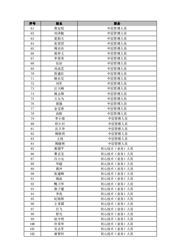 江(jiang)西正邦科(ke)技(ji)股份有(yǒu)限(xian)公(gōng)司2019年(nian)限(xian)製(zhi)性股票激勵計(ji)劃首次授(shou)予激勵對象名(míng)單(dan)